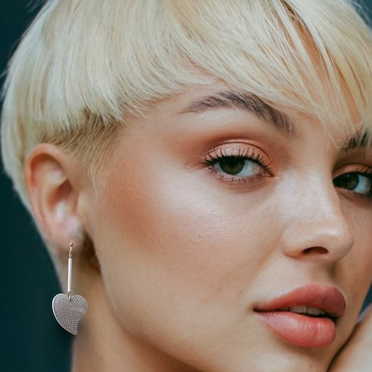 Silver Heart Earrings with White Bar
