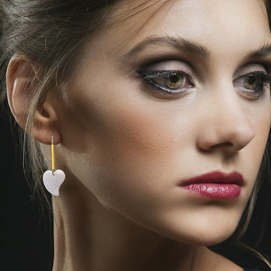Silver Heart Earrings with Yellow Bar