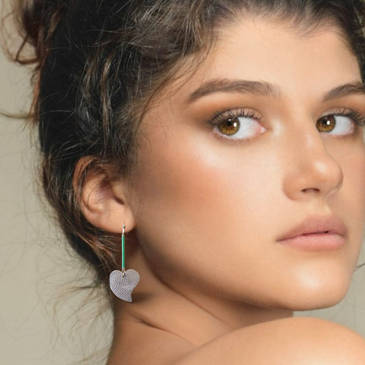 Silver Heart Earrings with Green Bar