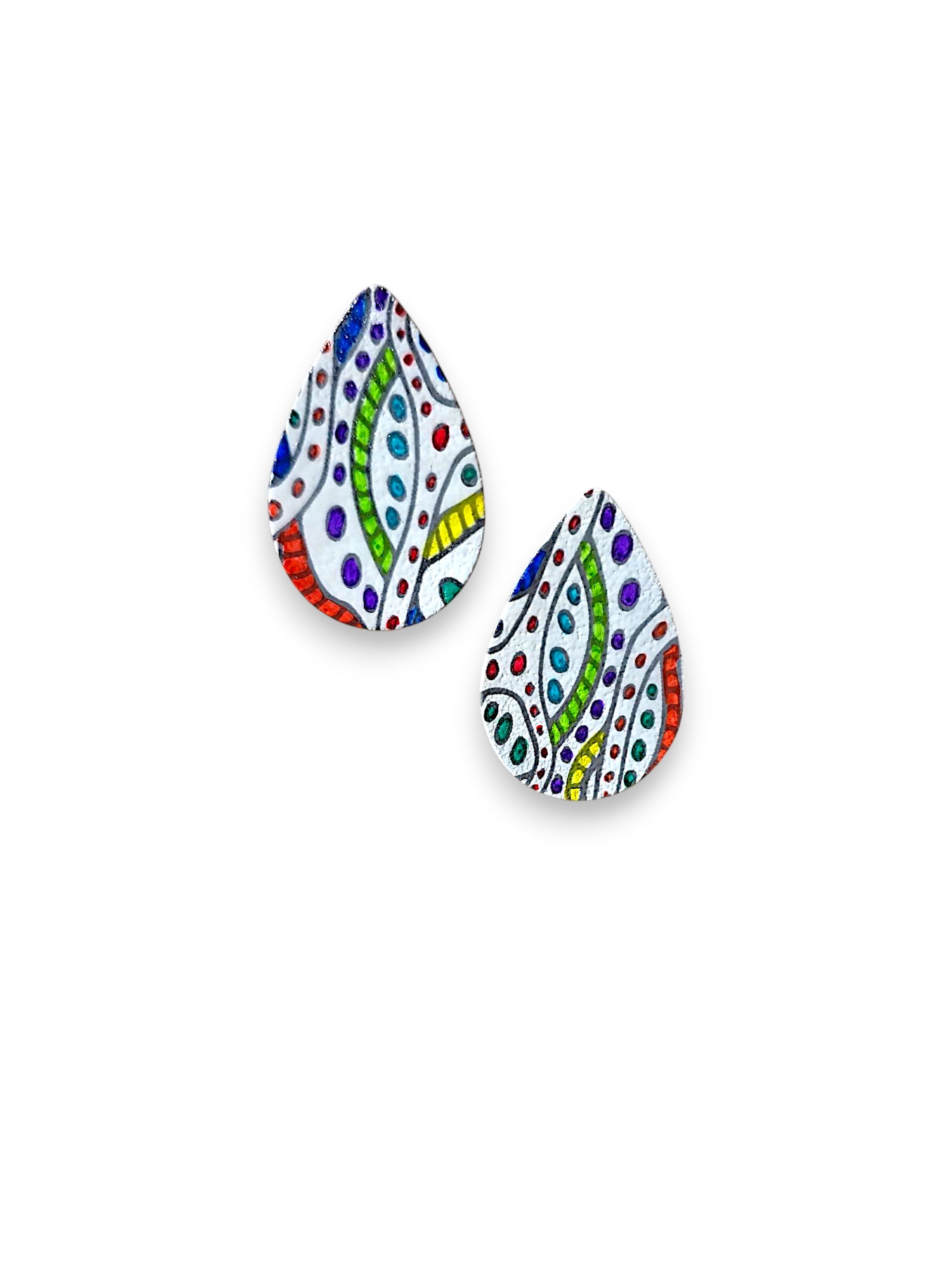 Joy in full color. These Color Bloom are laser engraved and hand painted with meticulous enamel detailing that bursts with personality. Each teardrop shape carries a dance of vibrant hues—modern, fearless, and completely unforgettable. Made for bold women who live out loud, love color, and never blend in.