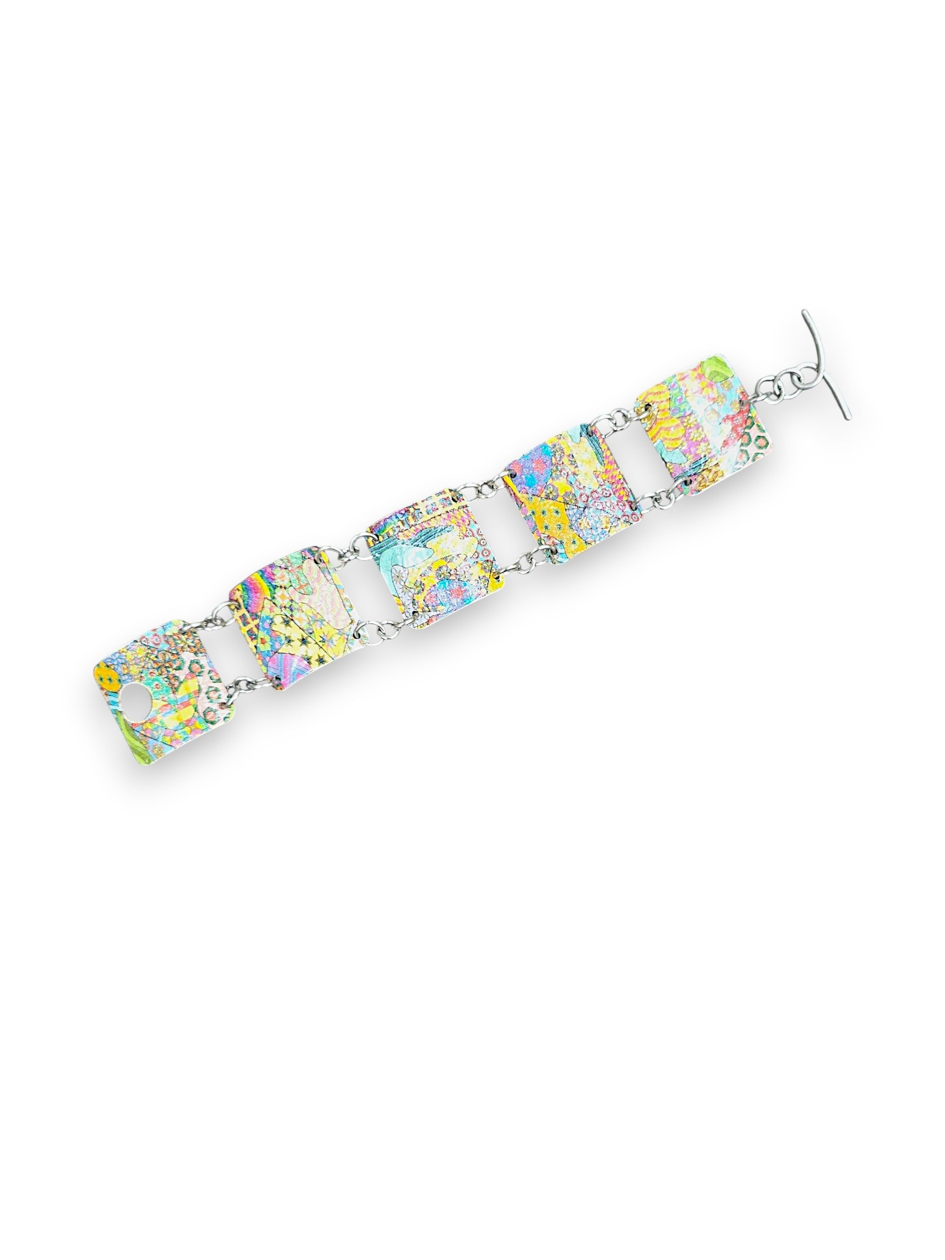 Sleek, modern, and endlessly versatile—the Colorful Muse Bracelet pairs intricate multi-color waterslide decal patterns with the strength of powder-coated brass. Each segment feels like a mini artwork, making this bracelet a sophisticated statement piece for women who love bold design with timeless edge.